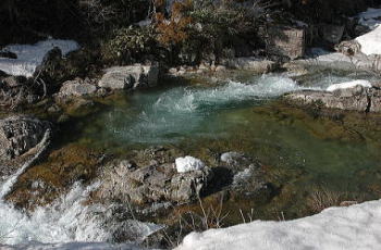 ![]() 1/28 久しぶりに雪が降りだしました。(上 大暮) 根雪がないので、頼りなさそう・・ 御前滝付近(左) |